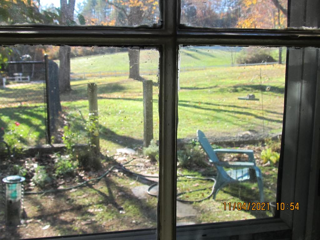 The other day I moved a narrow second hand desk to the dining room and put it by the window . The window faces southwest, and looks out into my dooryard and out across the road to an old field. The huge trees in the photo are sugar maples, which my landlord taps in late winter. God knows how old these trees are.