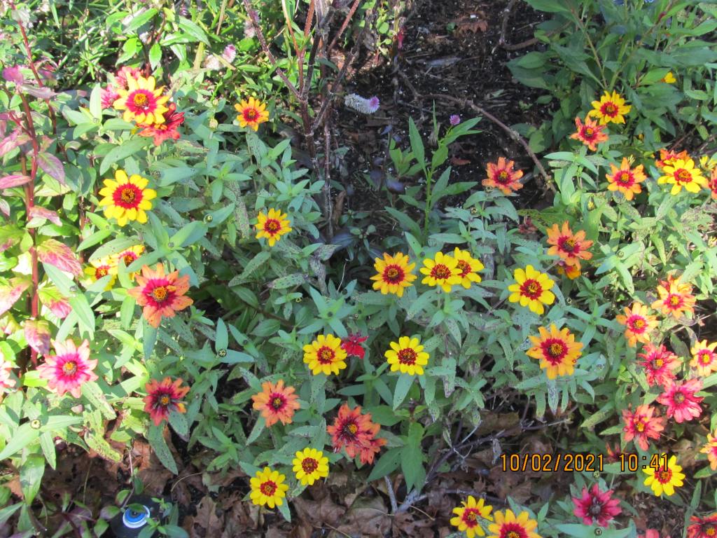 Kudos though to the little “Gem” marigold and its filigree foliage. And to most of the zinnias. How glad I am to have a dozen of the marigold “Profusion Bi-Color”, which I admired last fall at the Heritage Gardens in Sandwich, Massachusetts. Here is a photo from that visit-