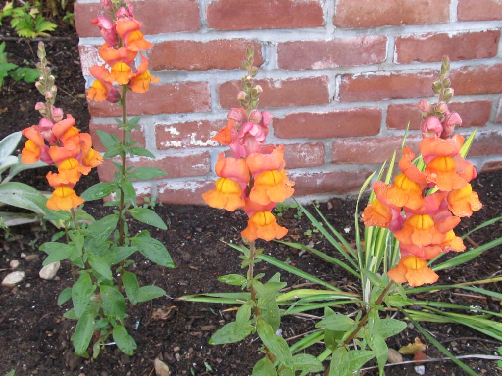 The Parker Museum has some orange blooms now. One is the snapdragon “Cool Orange”, which we planted in front of the wishing well planter with its new antique rusted handpump. The other is a coreopsis new to me,” Lil’l Bang Darling Clementine”. Quite the name, I think.
