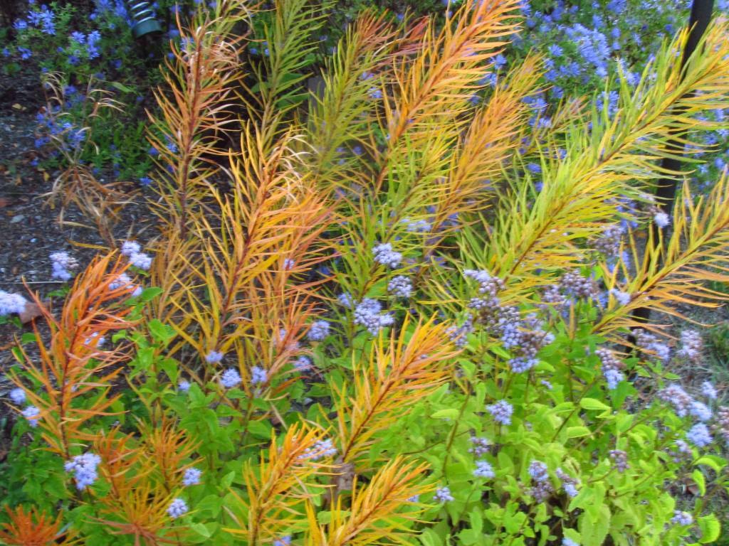 This fall was the first time Amsonia hubrectii “Butterscotch” reached maturity and showed its autumn coloring as it flowered along side the hardy ageratum Cononclinium colestinum and the aromatic asters.