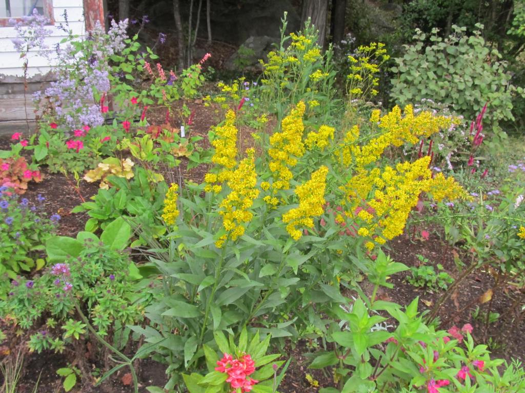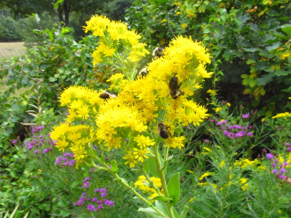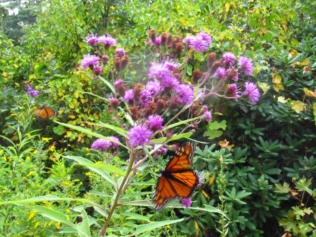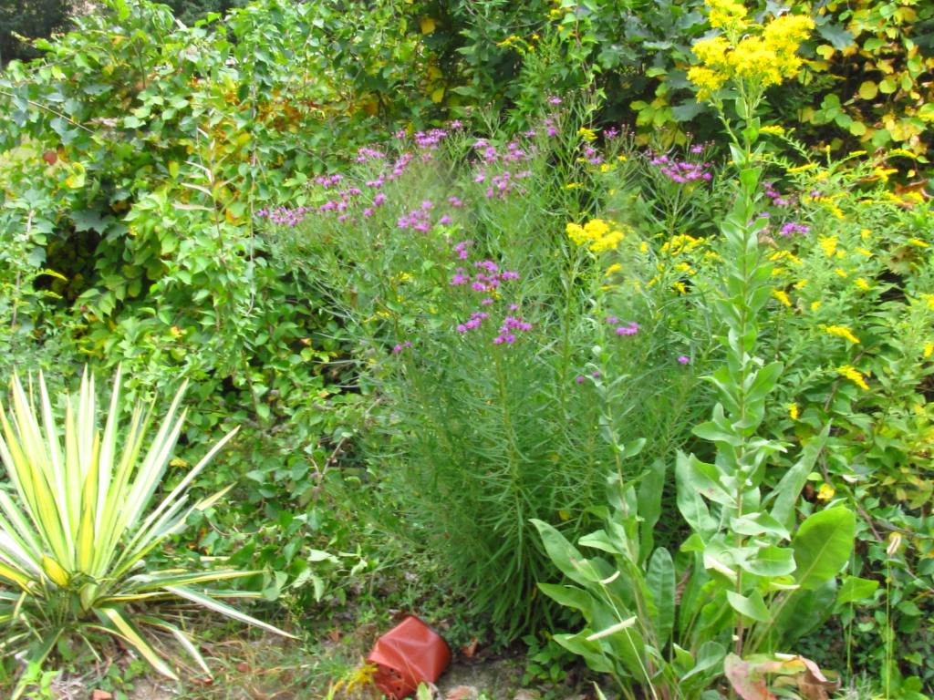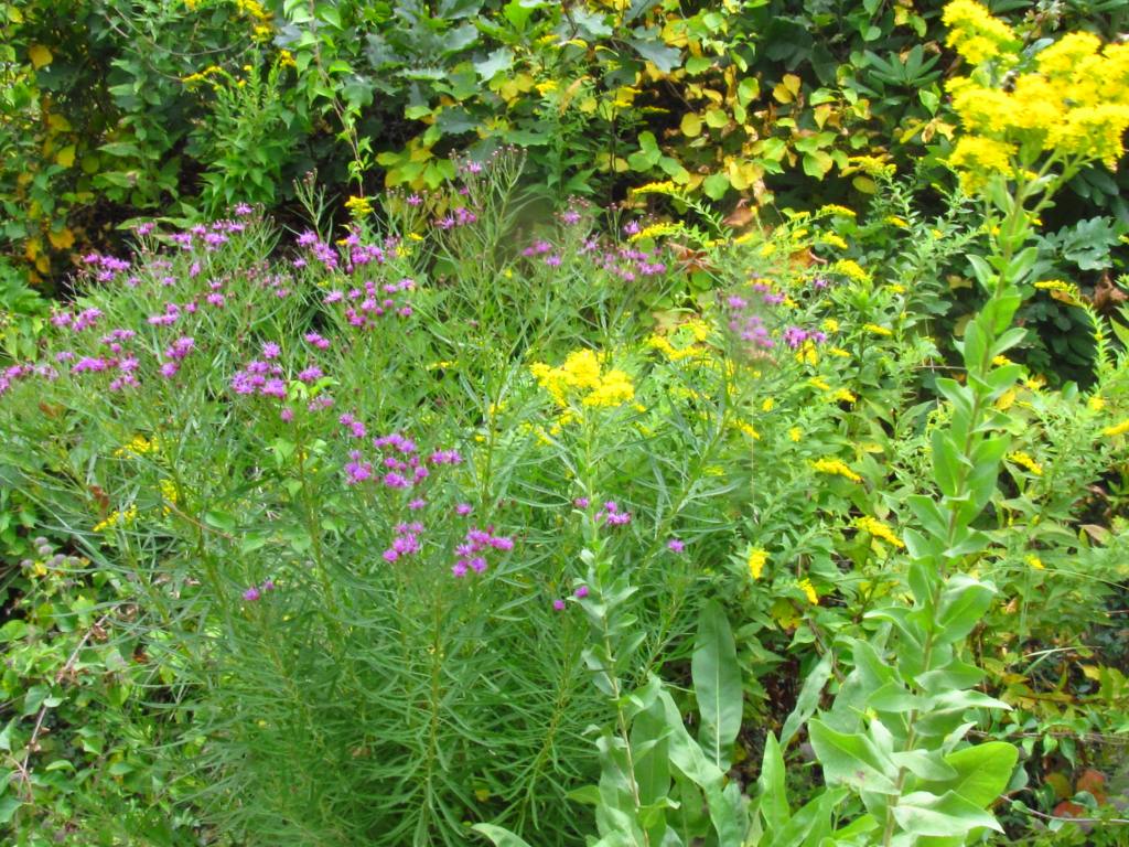 The wildflowers in this garden include Rigid goldenrod, Rough goldenrod, Ironweed “Iron Butterfly” New York Ironweed, and Yucca filamentosa “Color Guard”.