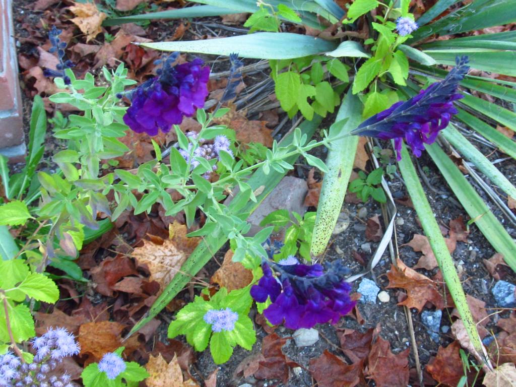 This last photo is of great interest for it is of one of the new “Flower Kisser” series of hardy autumn blooming salvias. This plant came from High Country Gardens online. It has been in the garden three years, but this is the first time it has bloomed.