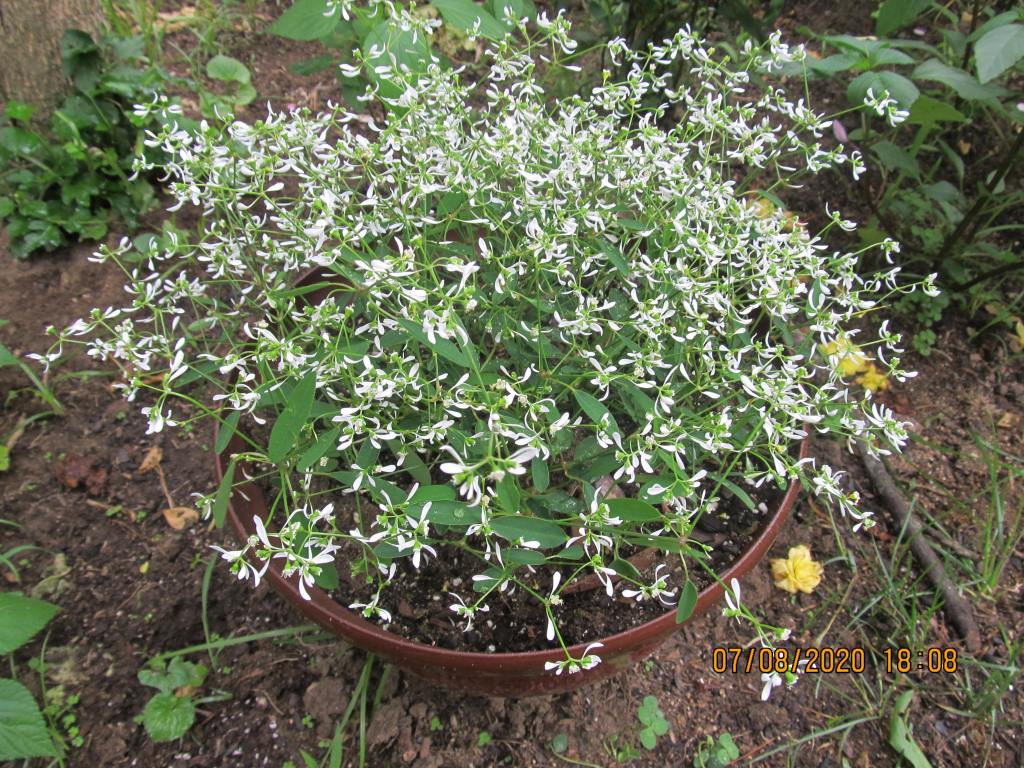 I had to park across the street next to the dumpsters, for the lot was full. I found the new anemone cultivar “Fall in Love ‘Sweetly’ ” and “Fiery Meadow Mama”, a showy coneflower, and as I was loading them into the front seat to ride along home with me, I saw something unbelievable growing near the dumpsters. I brought home a bouquet of it, hoping I could save some seed, though I did not know if the color would run true.