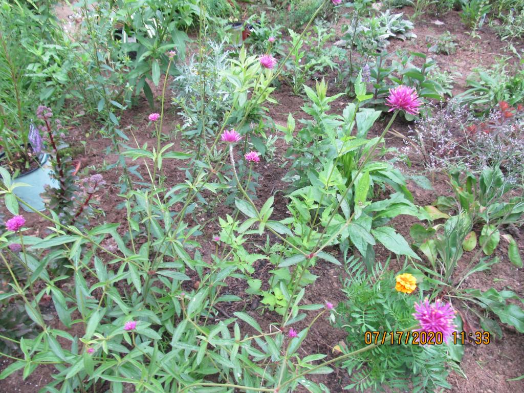 I added Globe thistles, blue agastache, Russian sages, Salvia darcyi, Salvia “Cold Hardy Pink”, Lavender “Phenomenal”, Tropical Butterfly weed, Pink Porterweed, Salvia “Windwalker” and “Indigo Spires”. Also: Kudos agastaches, Artemesia Silver King, Sea Lavender. White perennial scabious, Aster laevis, Aster “Monte Casino”, Aster “Pink Star”, Panicum grass “Cloud Nine”, Sedum “Matrona”,Euphorbia polychroma, Yucca “Gold Sword”, Showy Goldenrod,”Southern Cross” Ironweed, Native orange Butterfly weed, Aretmesia “Silver Mound”. Red, orange and “Fireworks ” gomphrenas, and Verbena bonairiensis. The “Queen Sophia” marigold. Chrysopsis villosa, the prairie golden aster.