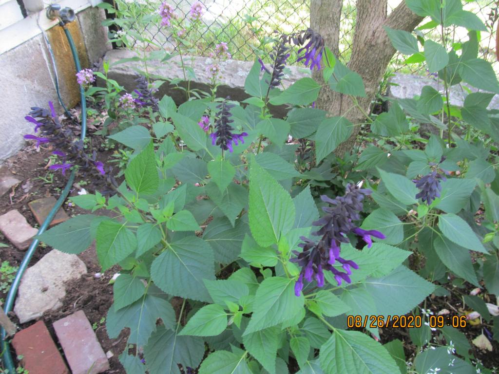 Salvia Windwalker, a floppy, but reliable bloom. In the driest, most sharply drained part of a sunny Zone 5B garden it will survive. My sister, who lives on a hill south of Concord, has one that lived through last winter.
