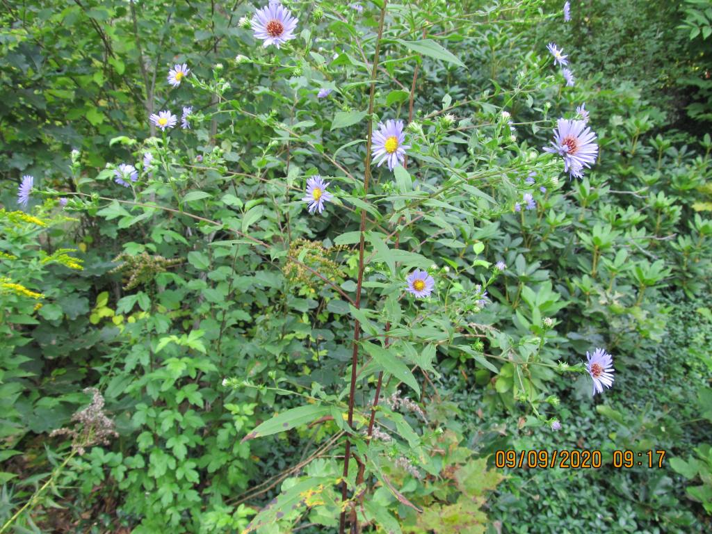 The first photo above is of the Late Aster-Aster patens. Though this 4 ft aster is at the rear of my dry garden, it was a volunteer and in our current severe drought, it has had only the rain the sky gave it. The second photo is of the Rough Leaved goldenrod in the moist field across the road from where I live.