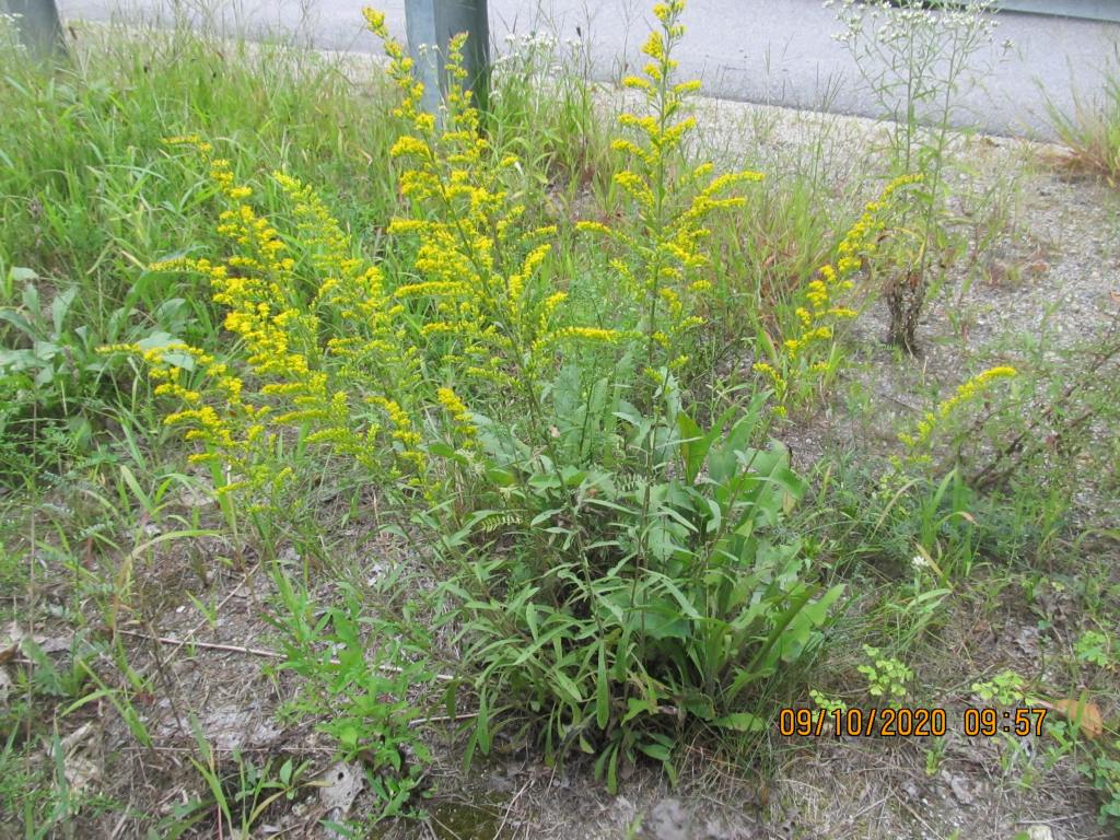 The third, smaller plant is the gray leaved, or Old field Goldenrod. This plant is in dry gravel on the side of a road.