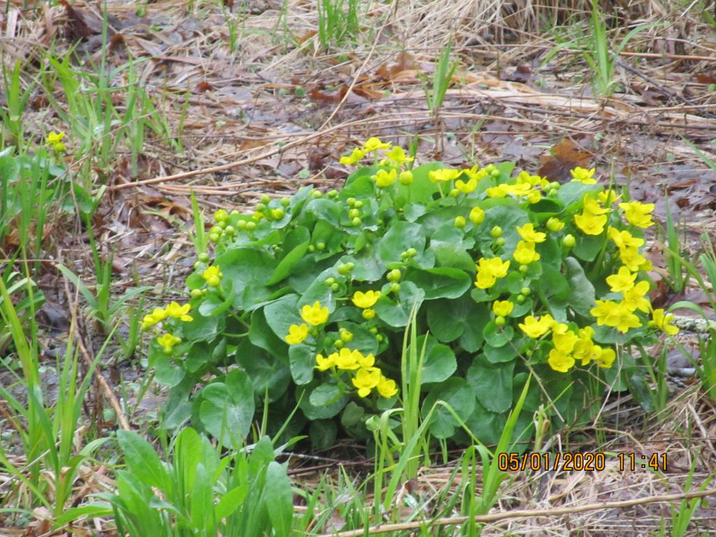 These Marsh Marigolds were blooming last month along a stream in New Boston. I had not seen this flower since I was a child, and I am now old. I was going to post this photo earlier, but spent April unnerved. Every week the plants I ordered in February and March came via UPS or the mailman. I bought them before shadows came over everything, and I wondered if I would be dead or sick when they arrived, for I have a dangerous job.