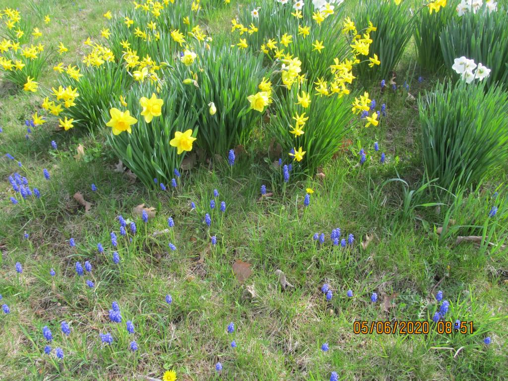 Across the road, down from Dunn Cottage and its daffodils, is a small conservation area. Naturalized lupines are blooming there now, and I stopped to take pictures. Anyone who thinks to pick these or dig them out, would see, as they grow closer that these flowers are surrounded by “Leaves of three, Let it be!”.