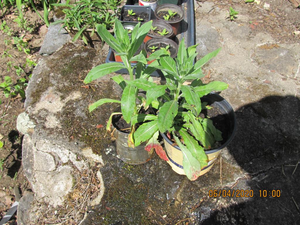 I found several fine specimens of Oenothera biennis, the tall evening primrose, growing in a ragged section of the lawn. I wanted them for the new dry border so I dug them out, potted them up, and put them on a shady porch to wait out transplant shock. Then I went onto the Internet where I read that these plants were impossible to transplant, would never live, and needed to be grown from seed.