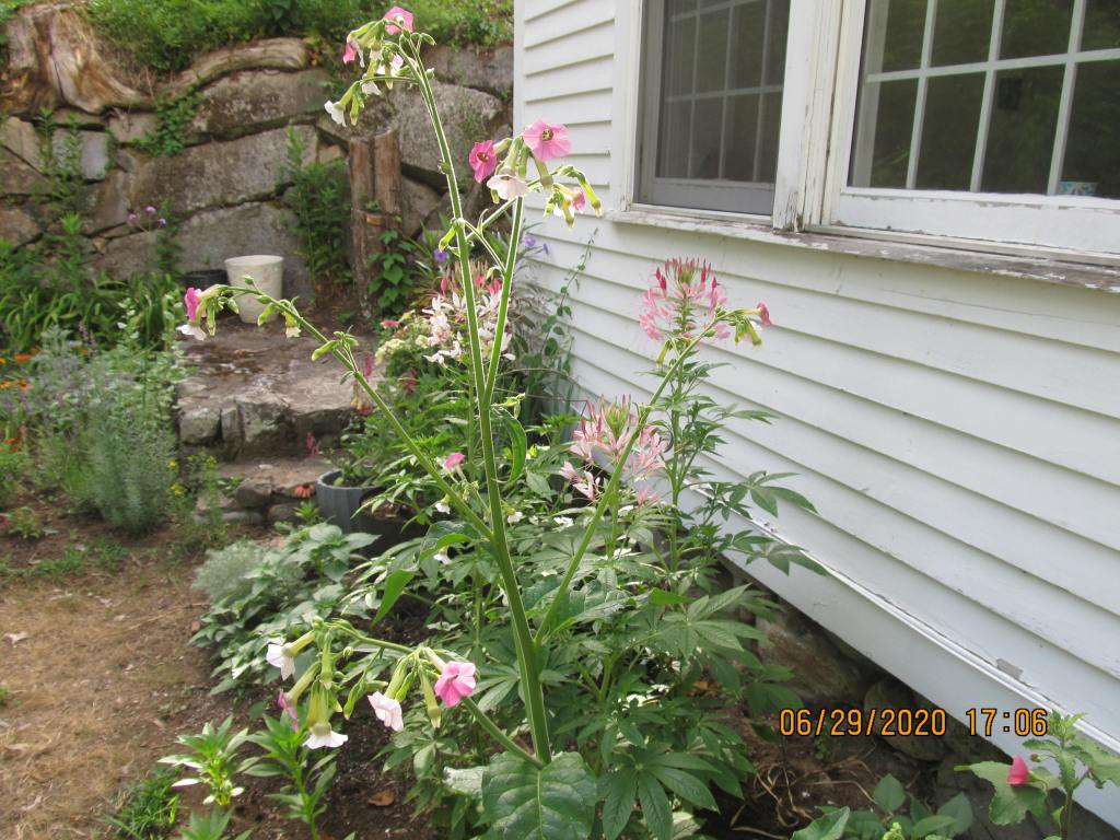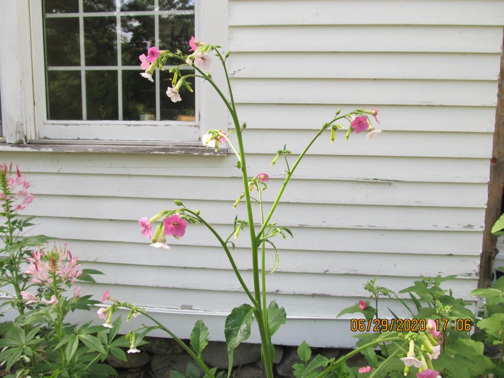 This plant, taller than I am, traveled 3000 miles to New Boston to live with me. I bought it, and two other Nicotiana cultivars, from Annie’s Annuals in California. I grew this flower in Tennessee where it remained small and reluctant. But I remember Elizabeth Lawrence, the best of American garden writers, writing that once she had seen the nicotianas blooming in New England gardens, she never again tried to grow them in her garden in North Carolina.