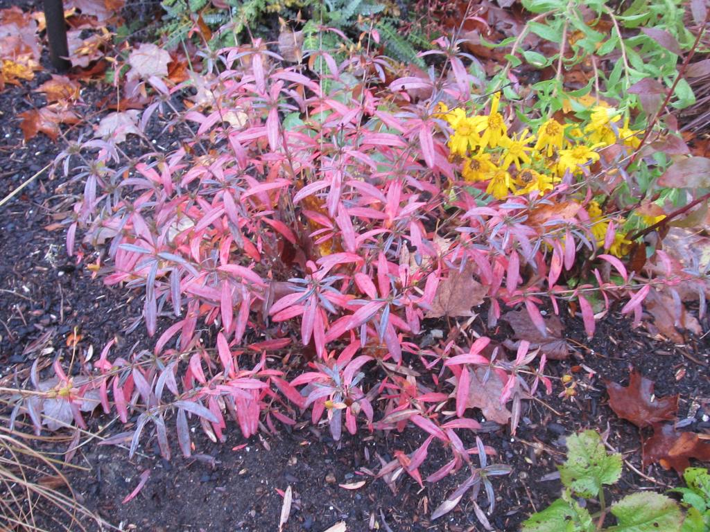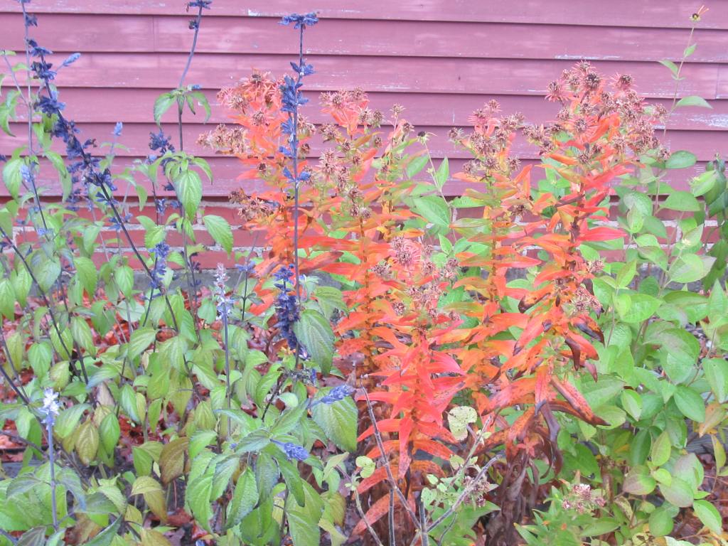 Yet some plants will put up a bloom or two. Here is one of them- Nicotiana “Crimson Bedder”, a tender perennial I bought from Annie’s Annuals in California. It blooms non stop from spring to freeze and spreads gently by wandering roots. It overwinters very well and I consider it an exemplary plant.