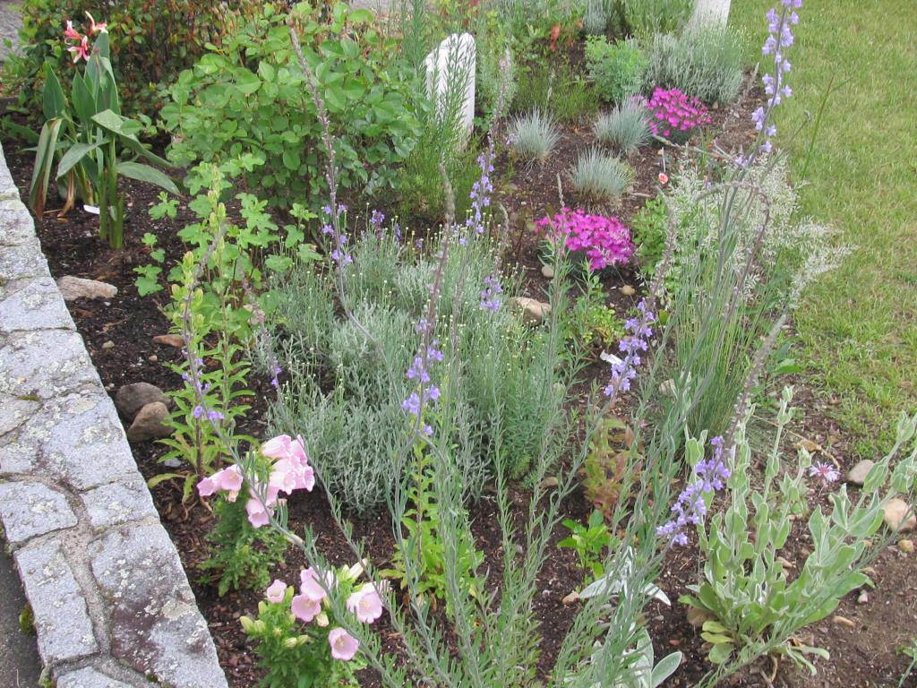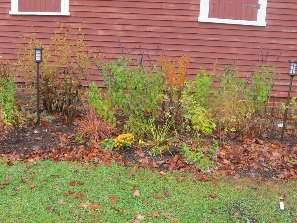 The Mary Garden at the Goffstown Historical Society is about to bloom with its roses, rose campions, and toadflax. And despite the chill nights and rainy days, canna “Panache” is flowering.