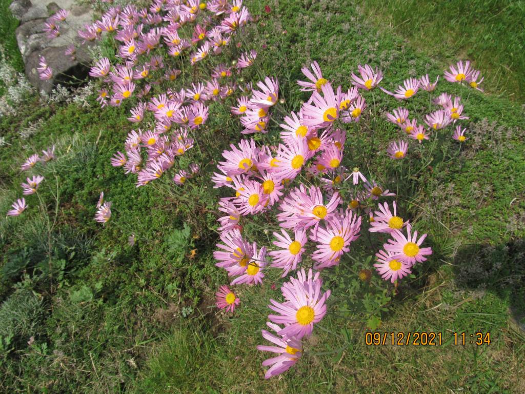 The above photo shows the Bristly aster blooming in a rocky spot where Scotch heathers are thriving. How I wish I had visited earlier when the heathers were in bloom-