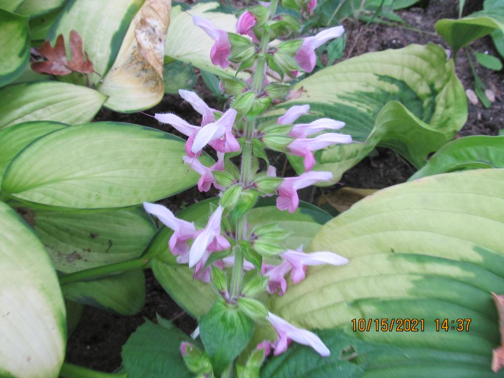 The salvia pictured above, “Mono Bama”, is hardy in Zone 5. It lives in the woodlands of Japan, and I grow it under the shade of a Kousa dogwood. Its flowers look like little orchids. The only source for it I know of is “Flowers by the Sea”, a mail order nursery in California.